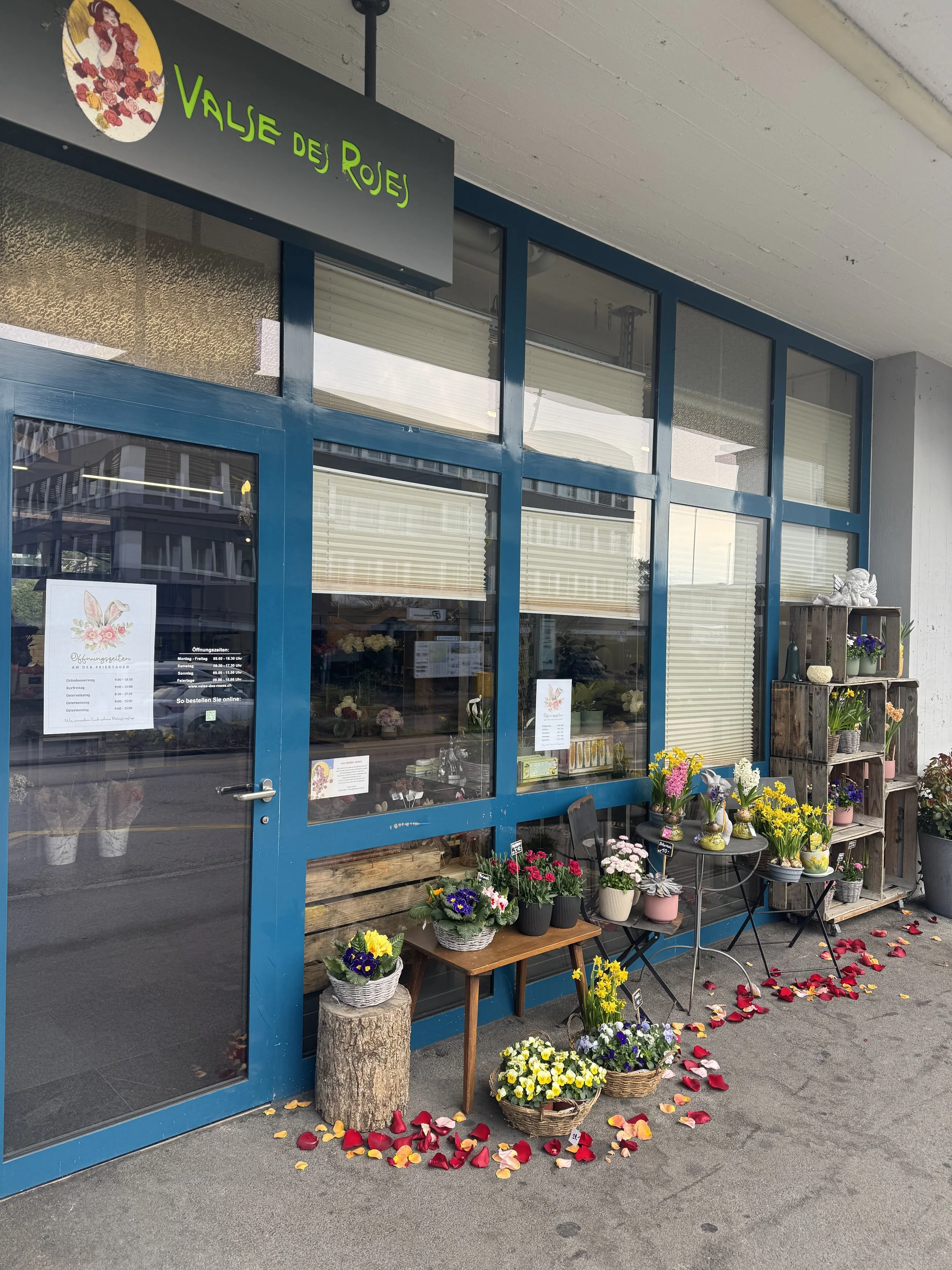 Jeden Tag geöffnet, auch sonntags und an Feiertagen – mit frischen Rosen, liebevollen Arrangements und ausgewählten Geschenkartikeln. Ein Ort voller Schönheit, der den Alltag verzaubert.
